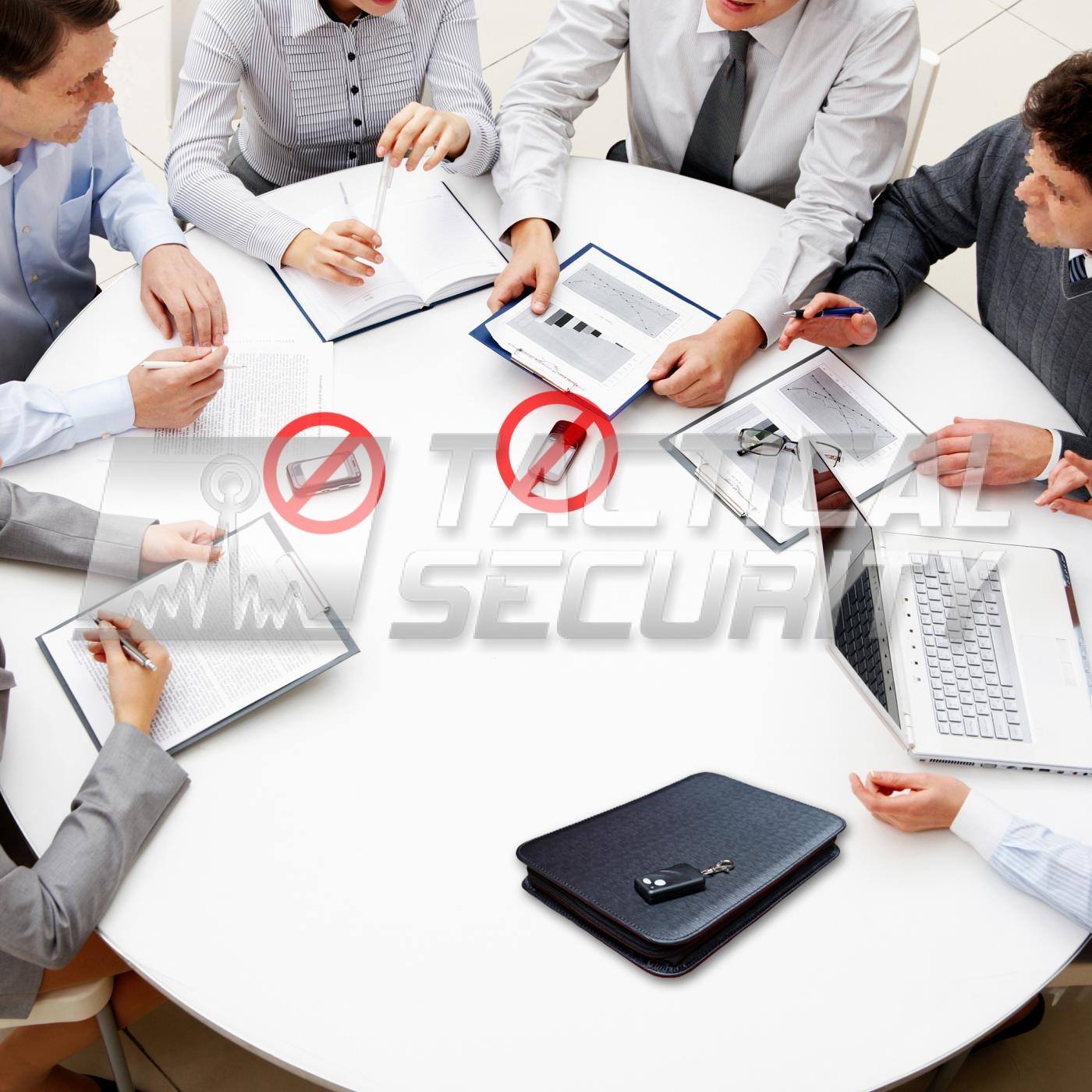 Una de las características más notables del Bloqueador de Grabador Digital Ultimate es su total portabilidad encubierta. El dispositivo se ve exteriormente como una carpeta común para portar papeles por lo que no atrae la atención en una reunión, en una oficina o en la calle.