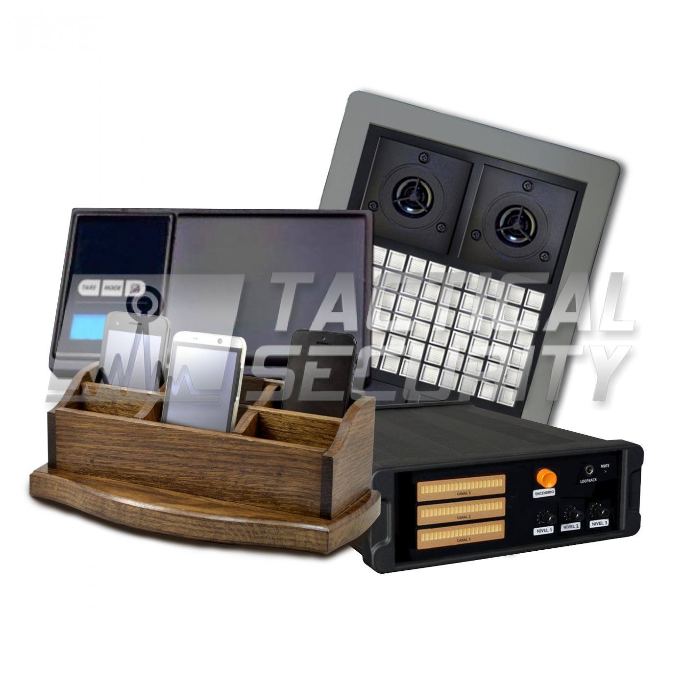 Esta unidad permite bloquear los micrófonos de todo tipo de celulares para evitar filtraciones externas. Permite bloquear incluso los teléfonos de modelos más antiguos por funcionar mediante supresión de sonido acústica. Gracias a un interruptor de activación inteligente el dispositivo solo funciona si se ubica un teléfono en su interior, de otra manera estará en modo de suspensión.